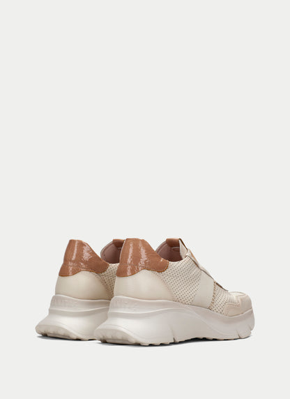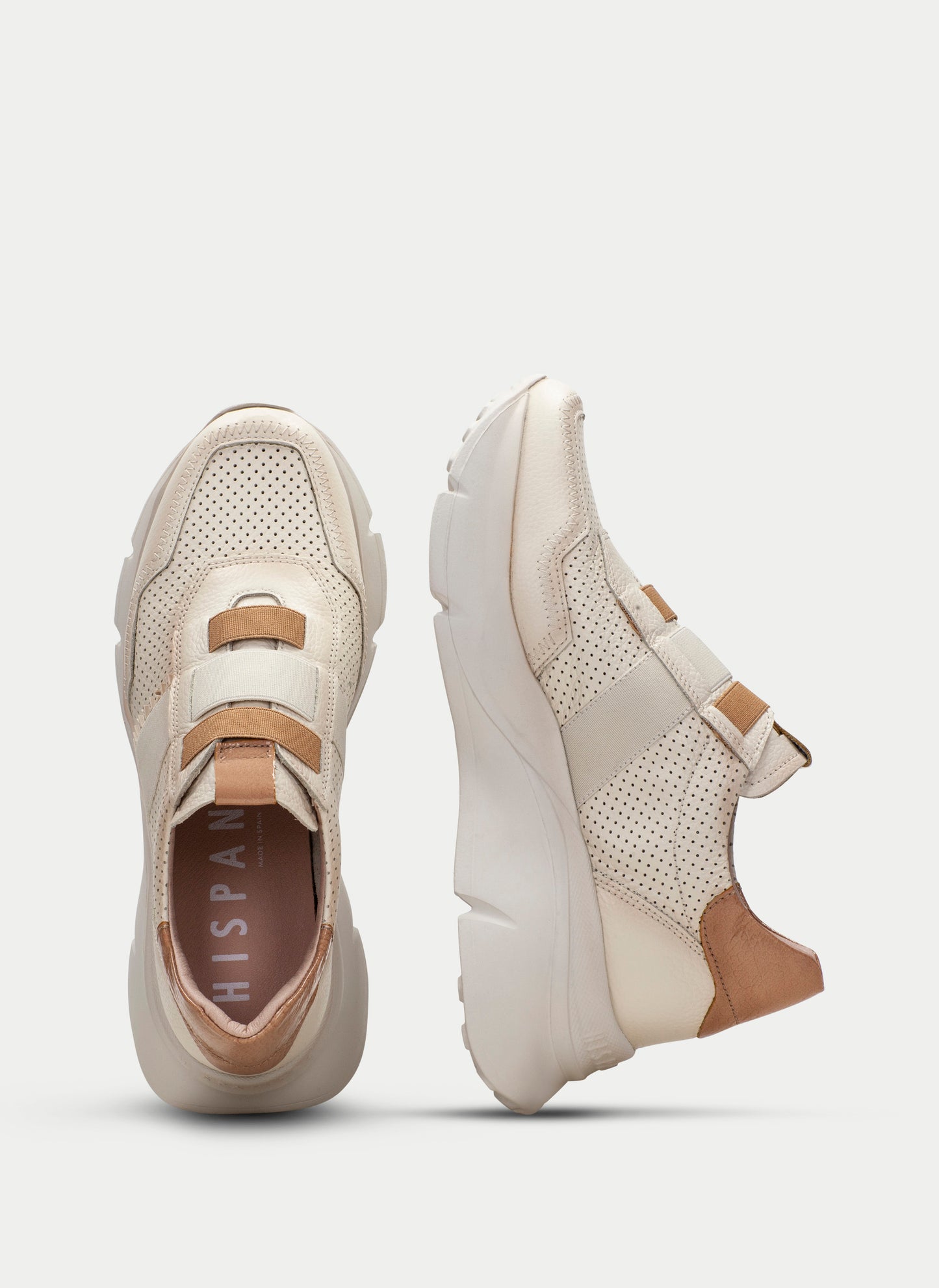 Sneaker with volume sole, made of a combination of materials. Mesh design and elastic fastening. This shoe incorporates the TRIFLOW technology, which cushions each step thanks to its triple cushioning, and it also has a removable insole.