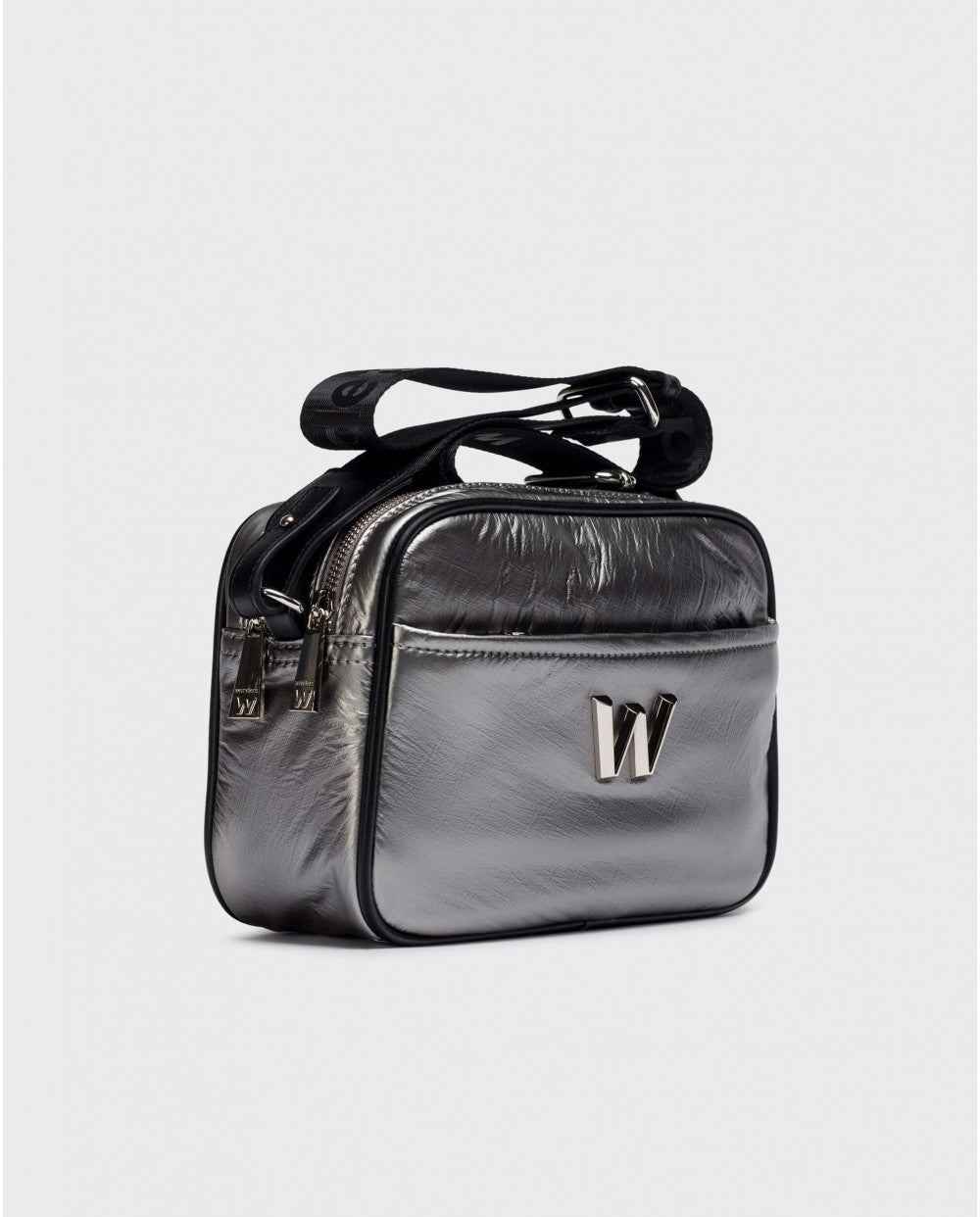 Women´s bag. This medium-sized rectangular-shaped bag has a metallic "W" detail on the front, a front pocket, a back pocket and two central pockets, all with a zip closure. With an adjustable logoed handle. The perfect complement to your Wonders shoes.