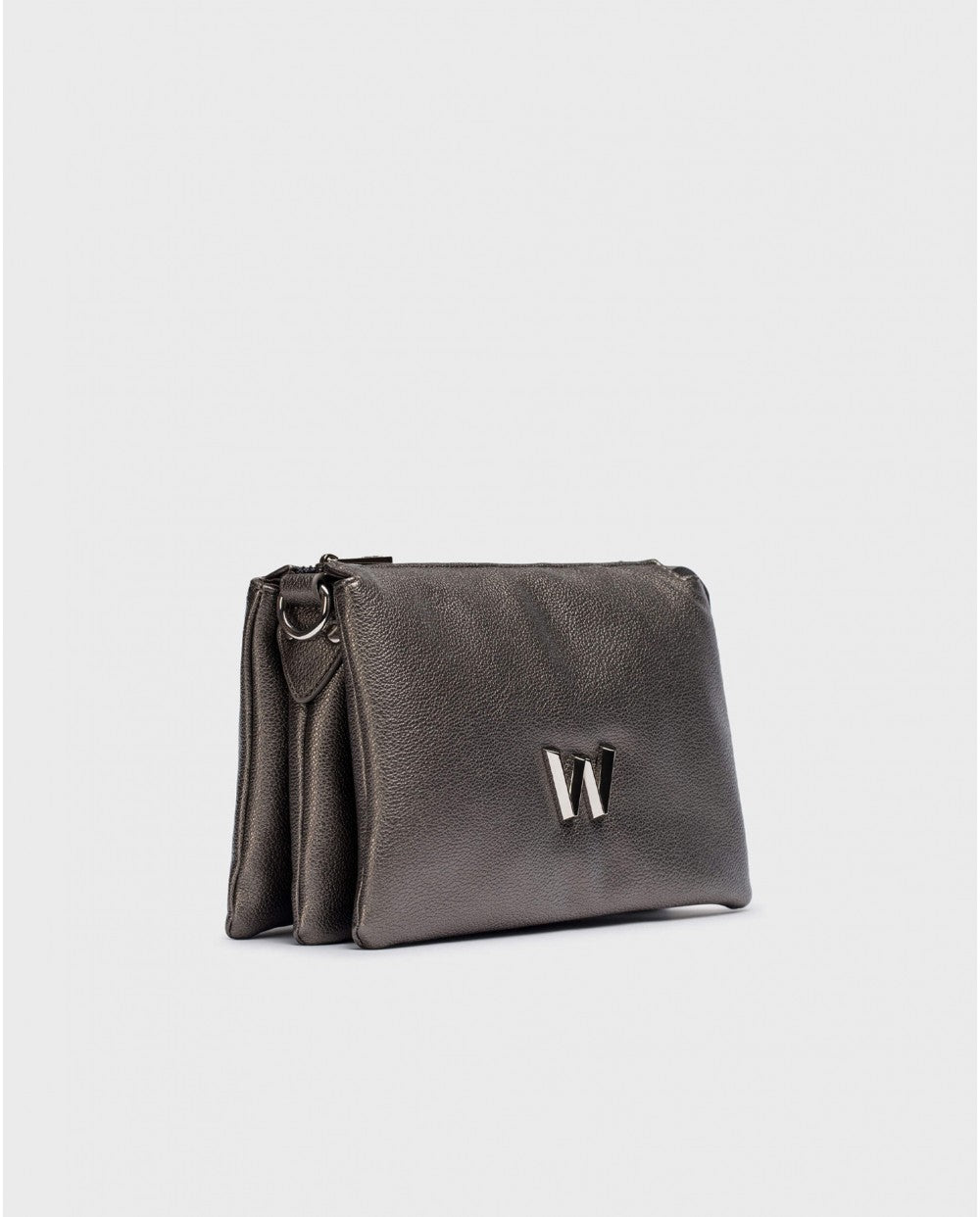 This fun and flirty crossbody bag is your new go-to for hands-free style. With its sleek rectangular shape and shiny metallic "W" front detail, it adds a playful pop to any outfit. Inside, three zippered compartments keep your essentials organized and secure, plus back pockets add extra storage for quick access. Measuring a handy 26x17x10 cm, it’s the perfect partner for your Wonders shoes to complete your look with effortless charm.